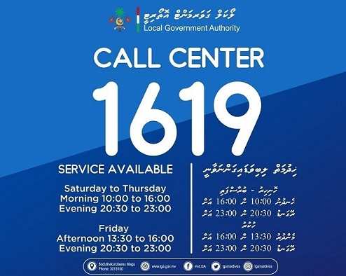 ކޮވިޑް19އާއި ގުޅިގެން އޮތޯރިޓީން ކުރަމުންގެންދާ މަސައްކަތްތަކާއި ގުޅޭ މަޢުލޫމާތު ހޯދުމަށް ބޭނުންވާ ކައުންސިލުތަކަށާއި ޢާއްމު ރައްޔިތުންނަށް ފަސޭހައިން ގުޅޭނޭ ގޮތެއް ހެދުމައްޓަކައި ޚާއްޞަ ހޮޓްލައިނެއް ޤާއިމުކޮށްފިއެވެ. ހޮޓްލައިންގެ ގޮތުގައި ބޭނުންކުރާ ނަމްބަރަކީ 1619އެވެ. މި ހޮޓްލައިންގެ ޚިދުމަތް ހުކުރު ދުވަސް ފިޔަވައި ކޮންމެ ދުވަހެއްގެ ހެނދުނު 10:00އިން ފެށިންގެން ހަވީރު 4:00އަށް، އަދި ރޭގަނޑު 8:30އިން 11:00އަށް ލިބިގެން ދާނެއެވެ.