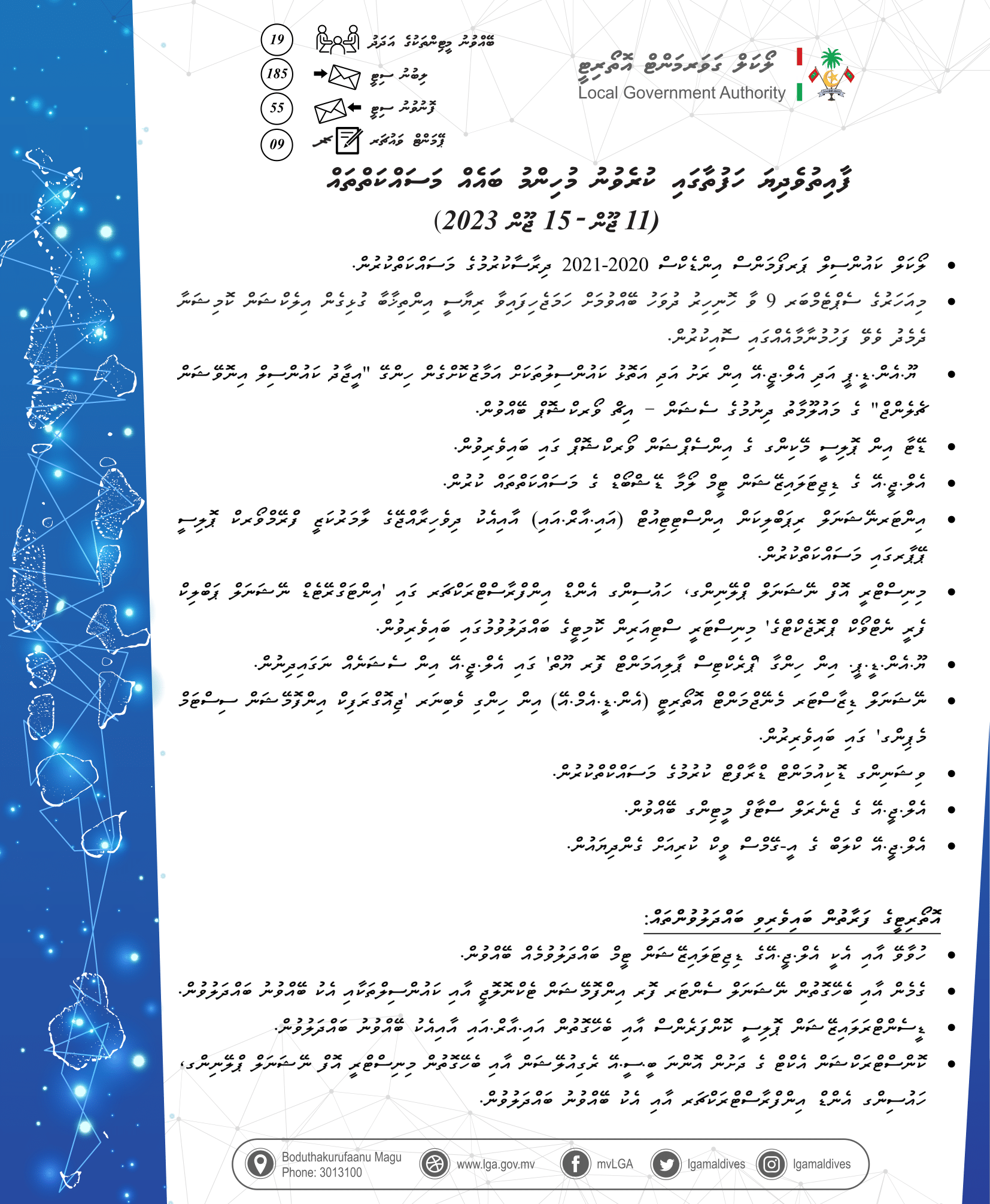 11 ޖޫން އިން 15 2023 އާއި ދެމެދުގެ ހަފުތާގެ ރިޕޯޓު